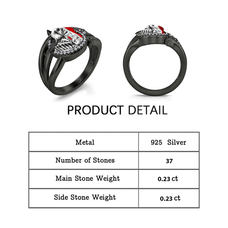 Jeulia Gothic Skull Diamond Rings: Sterling Silver Jack and Sally Skeleton Rings Band Halloween Romantic Nightmare Jewelry for Her Engagement Anniversary Christmas with Gifts Box (Everlasting Love, 7)