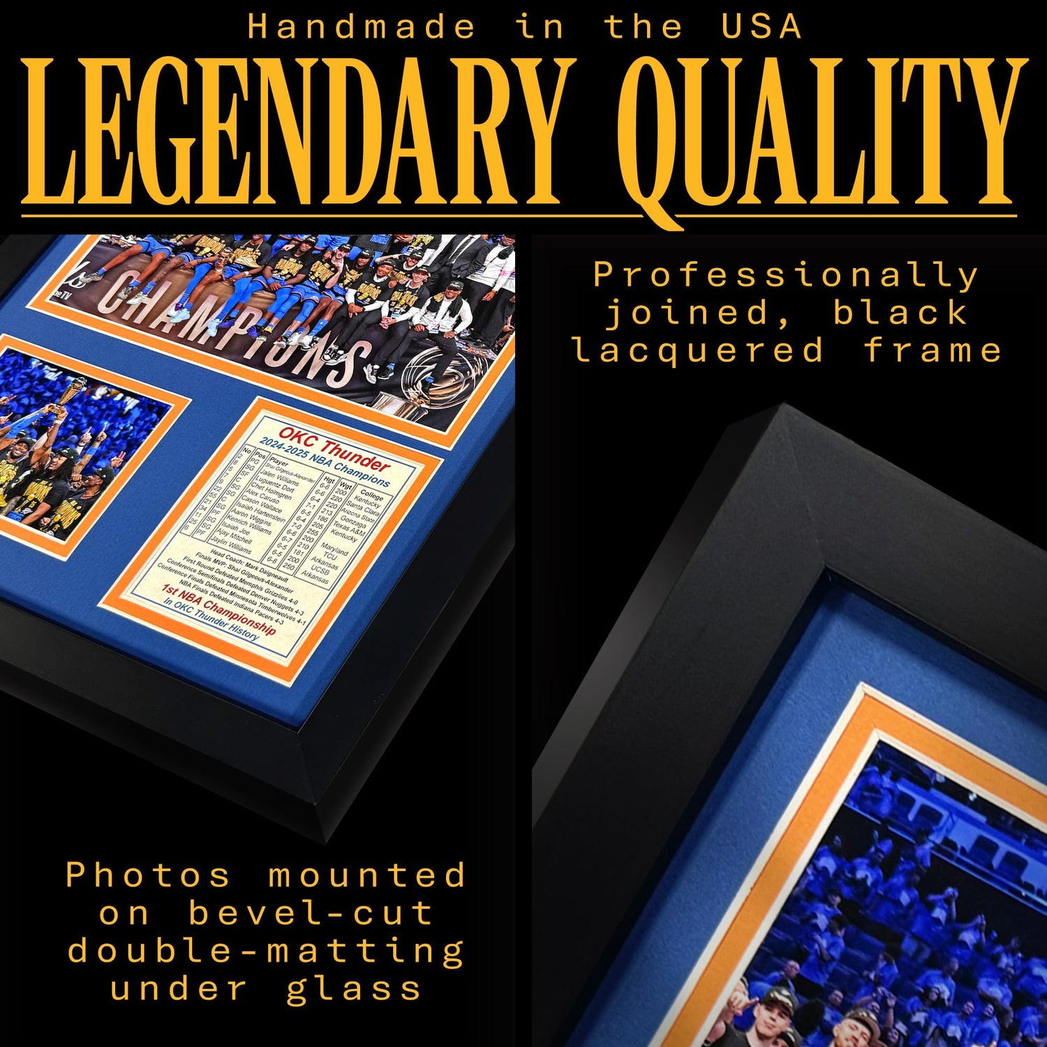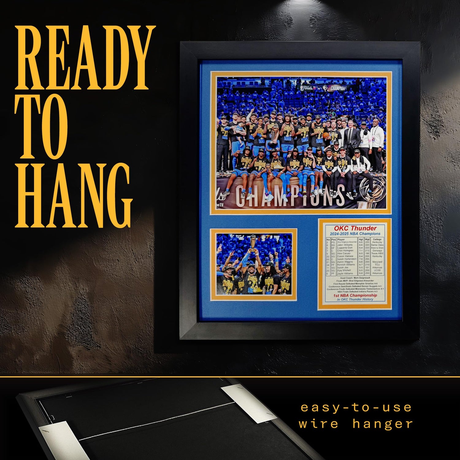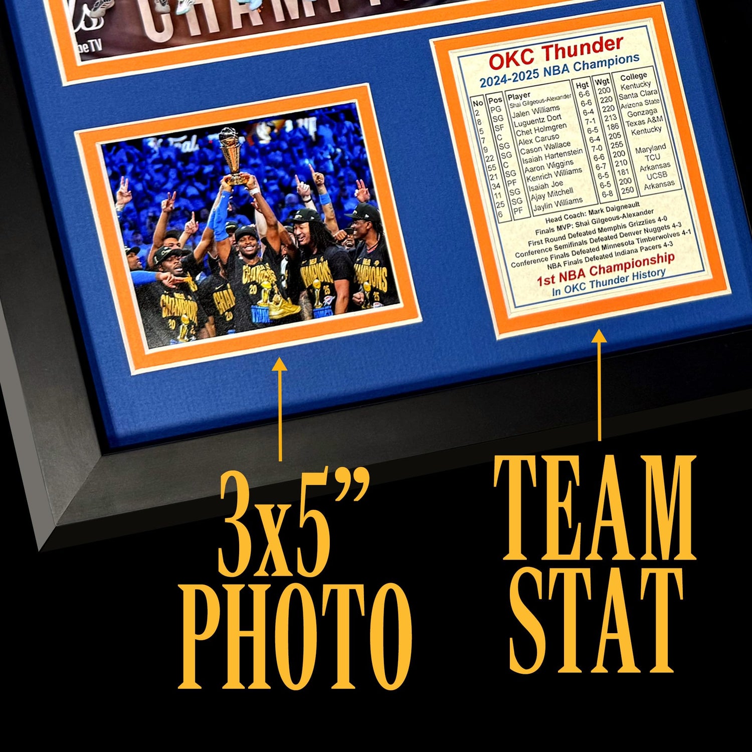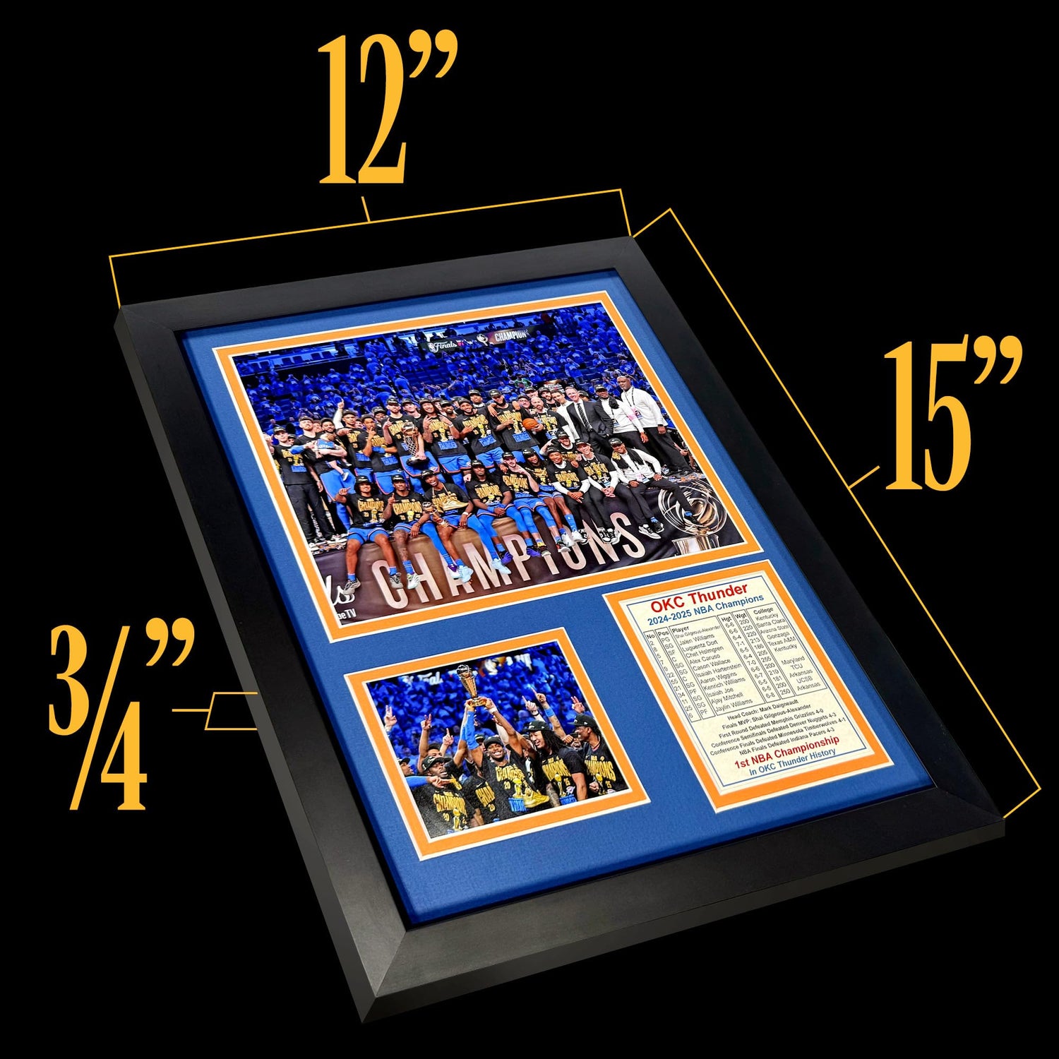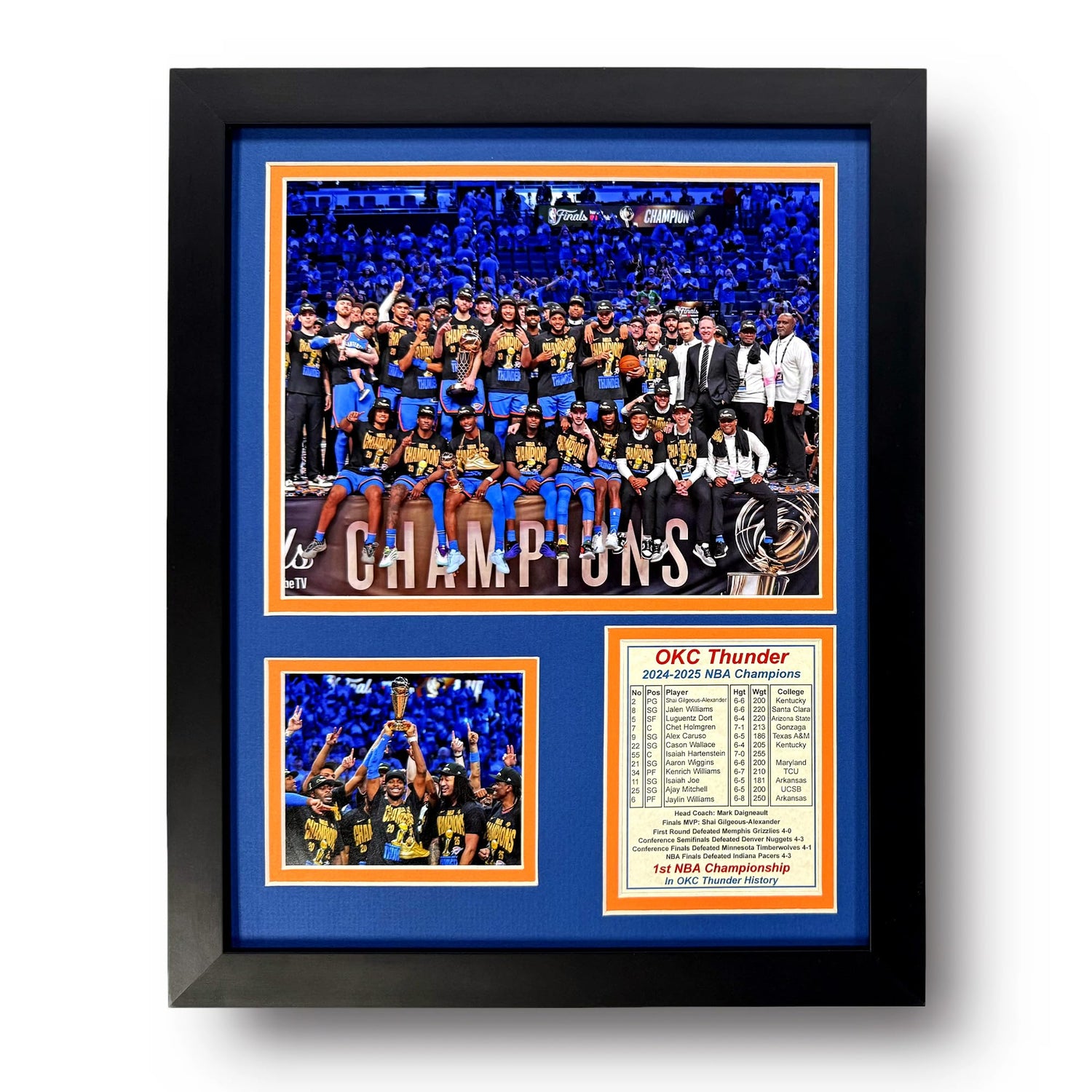 Oklahoma City Thunder (OKC) 2024-2025 NBA Finals Champions | Collectible Basketball Memorabilia | Framed Picture & Photo Collage Gift, Man Cave Wall Art, Home Decor (Podium, 12"x15")