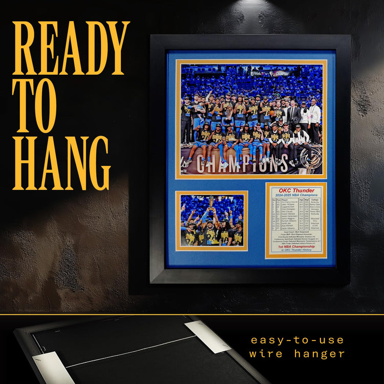 This Oklahoma City Thunder framed photo collage makes an unforgettable gift for any basketball enthusiast. Whether you're shopping for a birthday, Father's Day, Christmas, or celebrating the championship itself, this collectible memorabilia delivers instant Thunder pride. The professional framing and podium celebration imagery create a museum-quality piece that honors one of the NBA's most exciting championship runs.