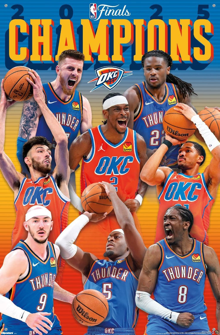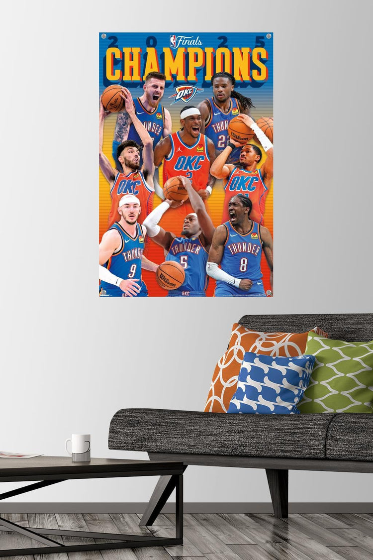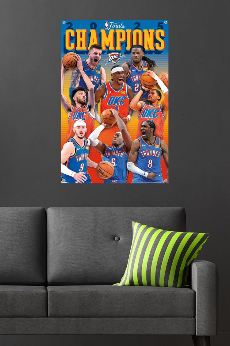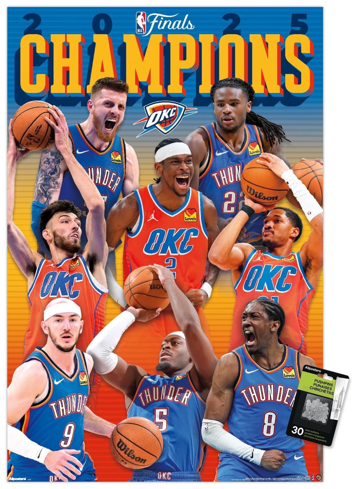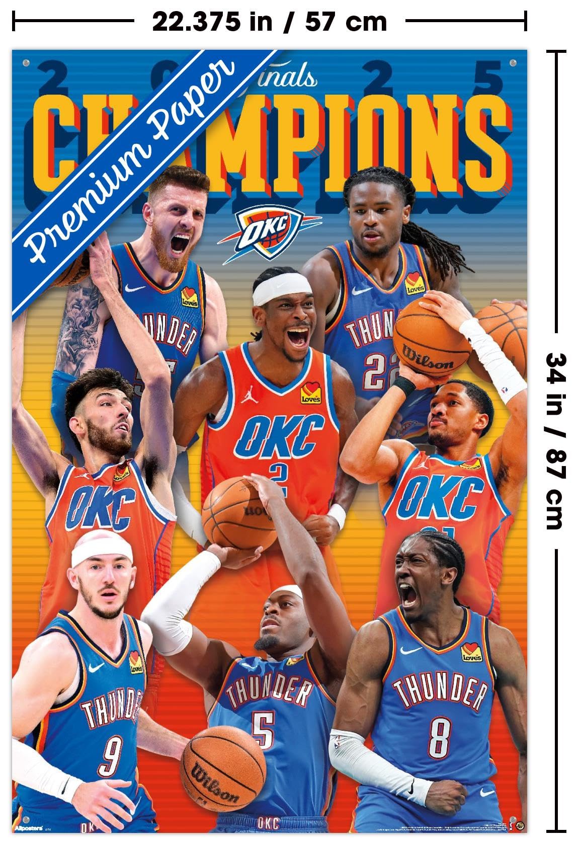 Trends International NBA Oklahoma City Thunder - 2025 NBA Finals Champions Wall Poster with Pushpins, 34L x 22.4W, Premium Poster & Push Pin Bundle