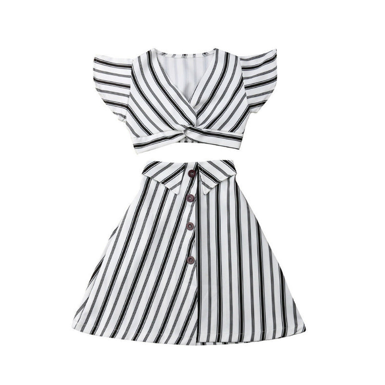 Children's Clothing Baby Girl Suit Striped Sleeveless Short Top And Long Skirt