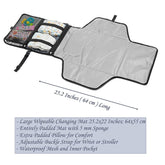 Here’s a stylish, compact diaper changing kit for home or on the go. The kit includes everything you need to comfortably and hygienically change your baby's diaper no matter where you are: a changing pad with a comfy headrest, an expandable mesh pocket that holds diapers, a wipes case that holds standard wipes, and a zippered outer pocket for personal items like your phone and keys. A convenient snapping strap allows you to easily attach your diapering kit to your stroller, baby carrier, purse, or diaper bag. Easy diaper changing by design.