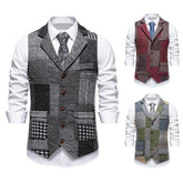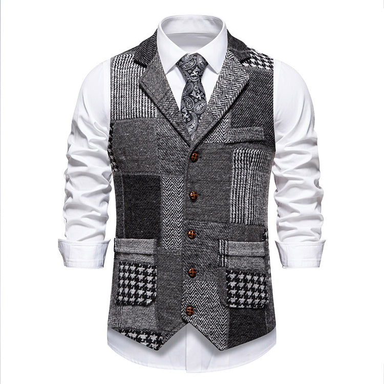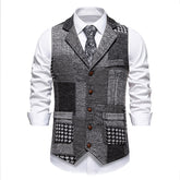 Retro Patchwork Lapel Men's European Size Suit Vest