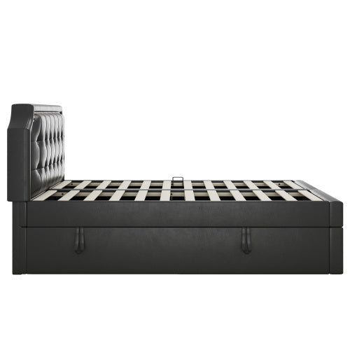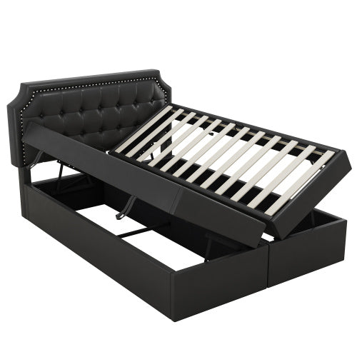 Product Name:140x200cm Polsterbett, Doppelbett mit Lattenrost aus Metallrahmen, Großer Stauraum, Beidseitig zu öffnen, Schwarz