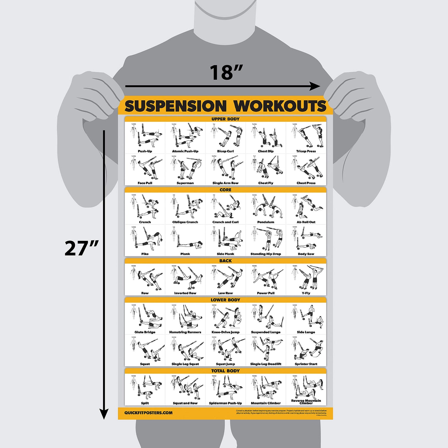 - 10 Pack - Exercise Workout Poster Set - Suspension Volume 1 & 2, Dumbbell, Kettlebell, Resistance Bands, Stretching, Bodyweight, Barbell, Yoga Poses, Exercise Ball (PAPER - NOT LAMINATED 18" x 24")