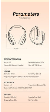 AWEI AT2ANC Bluetooth Headset With Active Noise Cancellation