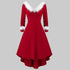 Christmas Women's Fur Patchwork V-neck Long Sleeved Dress