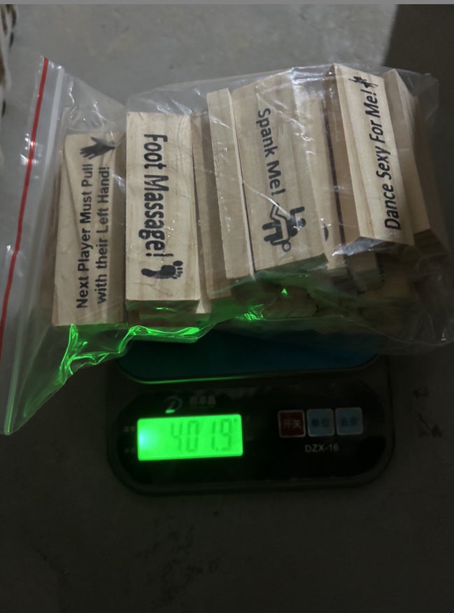 Specifications: Material: Wood | Age: 18+ | Players: 2+ (designed for couples) | Weight: 420g | Includes stacking blocks with romantic challenges | Perfect for date nights and parties