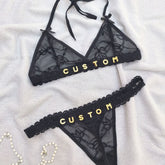 Custom Lingerie Set For Women Thong Panties Bra Set With Name Rhinestone Customized Thongs Personalized G-String Jewelry Gift