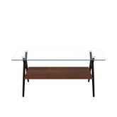 Product Name:Rectangle Coffee Table with Tempered Glass top and Black Metal Legs, Modern Table for Living Room , Transparent Glass